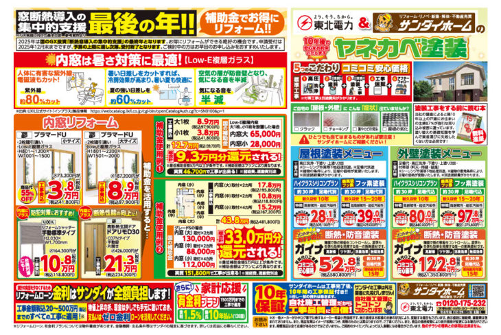 ▼ご好評につきエリア拡大!東北電力のお得な窓・屋根外壁塗装リフォームキャンペーン